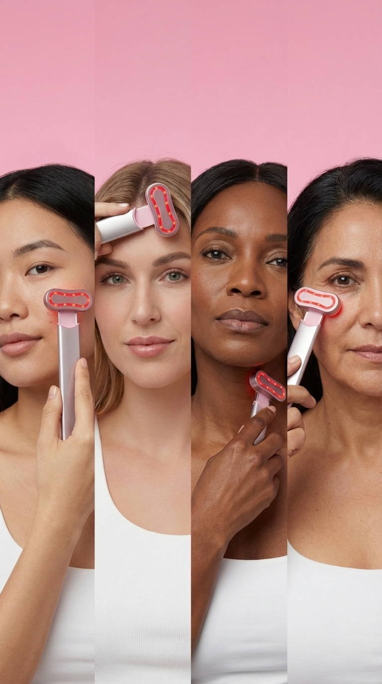 Che tu voglia attenuare le linee del sorriso, ridurre visibilmente il gonfiore nella zona occhi o definire maggiormente la linea mandibolare, la Skincare Mabelle 4-in-1 ti permette di decidere dove e come desideri vedere il cambiamento.
